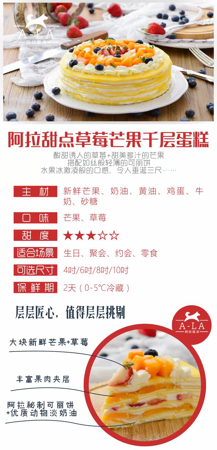 阿拉甜点草莓芒果双拼动物奶油水果生日千层蛋糕成都绵阳乐山同城