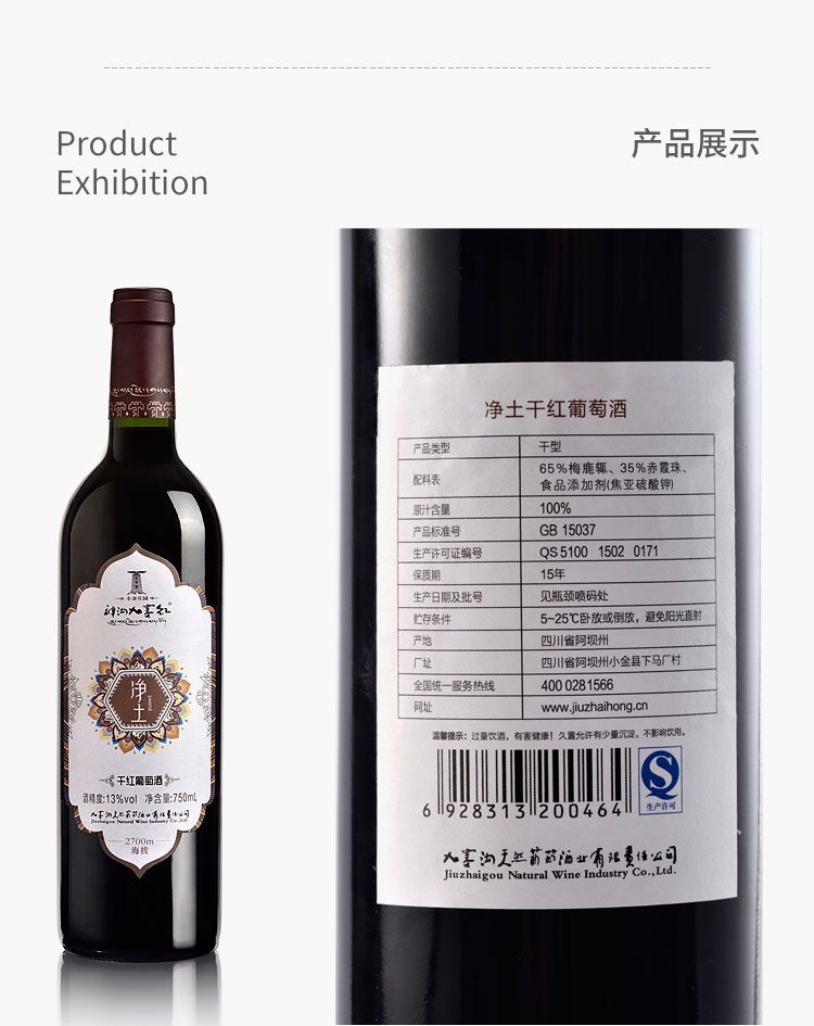 神沟九寨红 净土 干红葡萄酒单支750